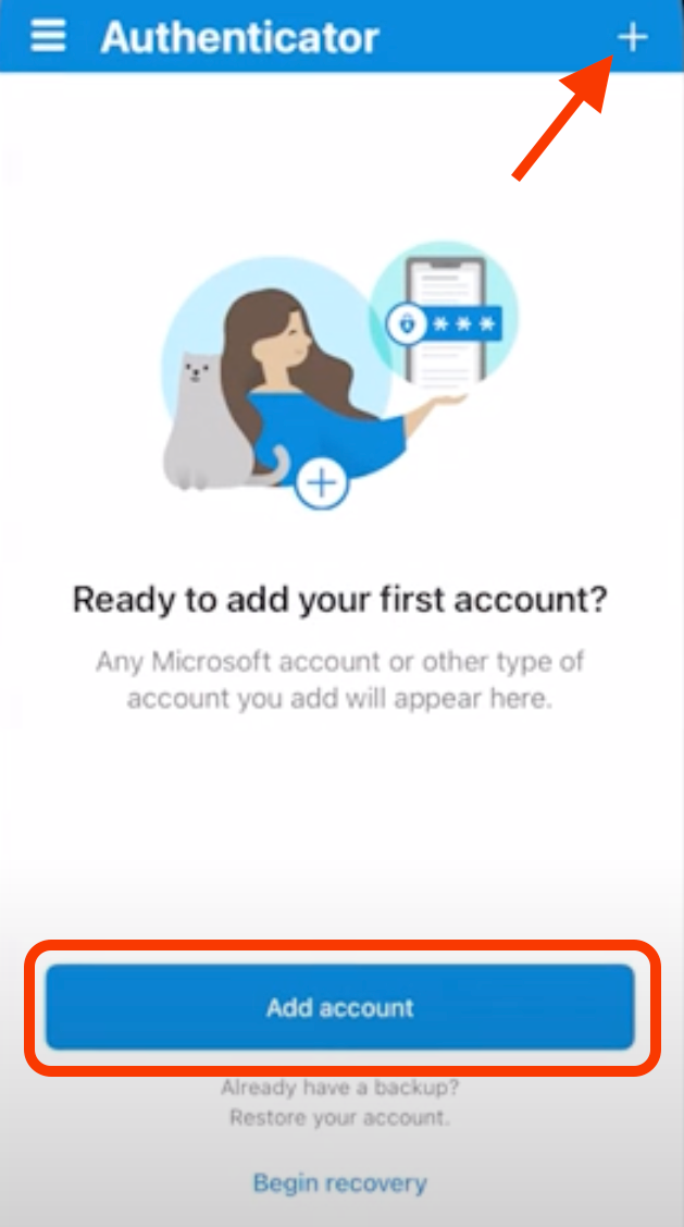 If you do have the Microsoft Authenticator app on your phone, follow the steps below to open it and begin adding an account.